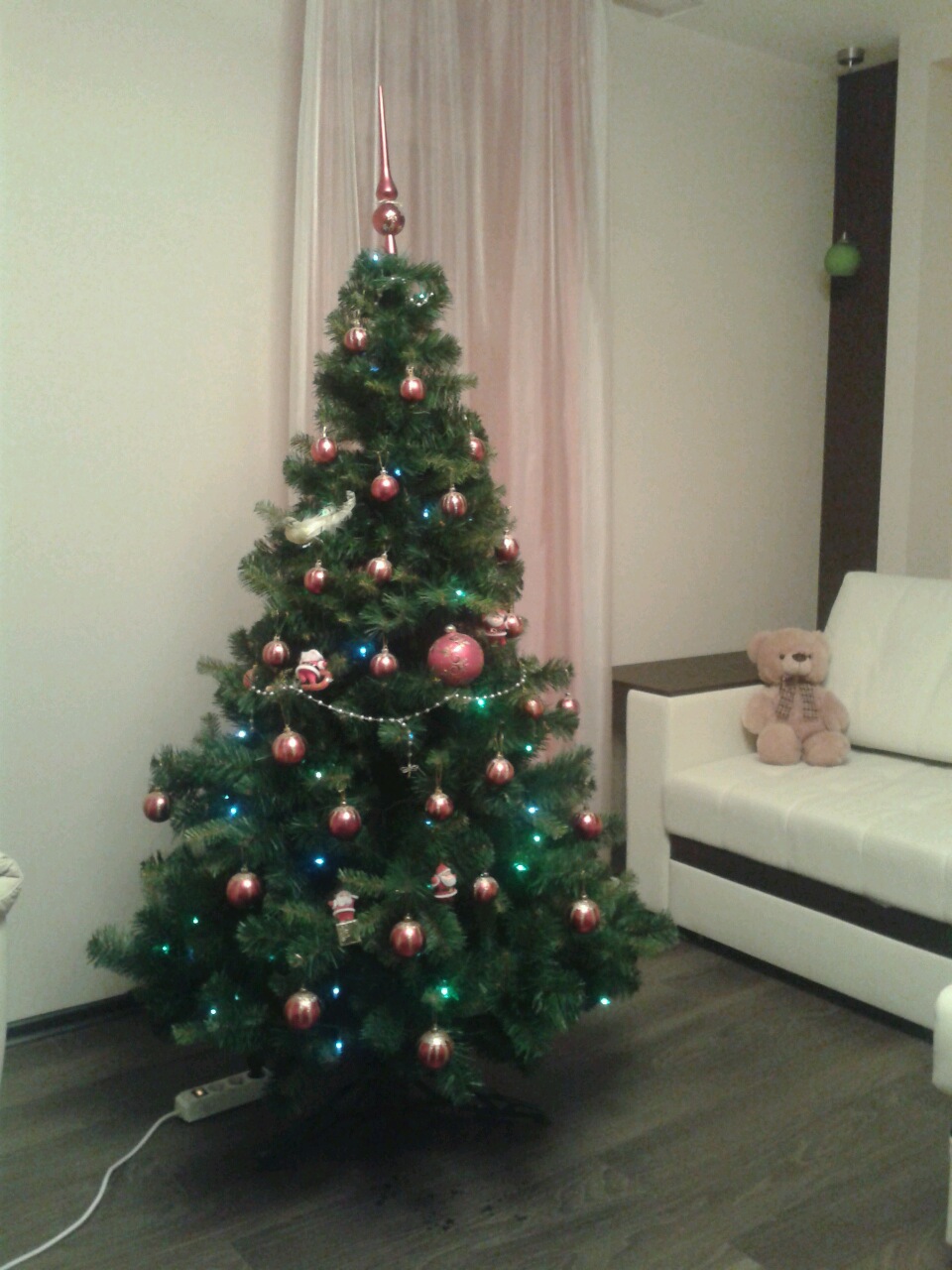 "Спасибо за ёлку,очень понравиласьна, на фото Ель Элeгия зеленая со светлыми побегами, хвоя пленка.Длина иголок 45-20мм ,180 см."