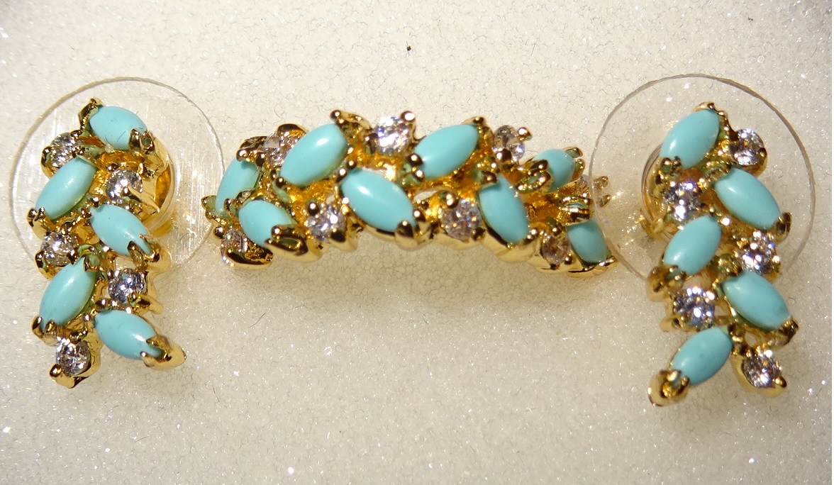 "Добрый день! В прошлых выкупах заказывала бирюзу и жемчуг. Всё очень понравилось. Камни яркие, горят, от золота не отличишь, только по весу (колье и серьги очень легкие). Бирюзу брала в подарок, именинница была в восторге. "