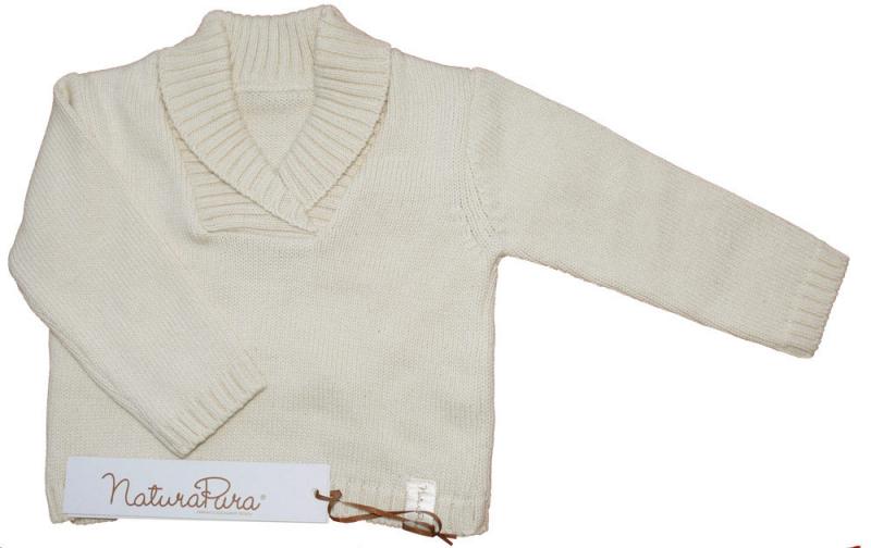 Модный теплый вязаный свитер украшен косами на рукавах.