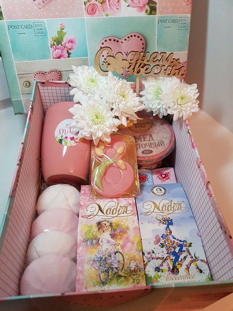 Чай, зефир, мед, пряник, бокал, мини-шоколад, хризантемы, топпер, коробка.