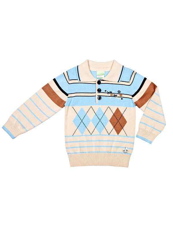 - Вязаный отложной воротник, вязаные манжеты по рукавам и низу изделия.