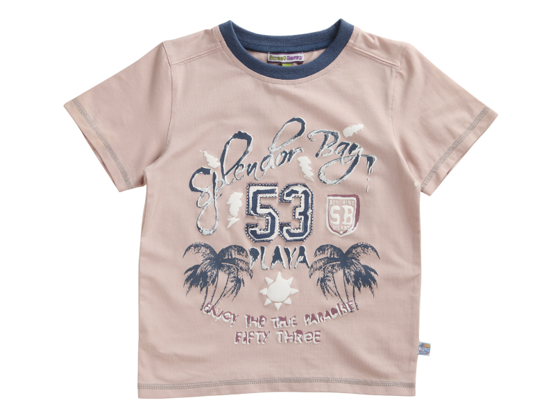 Декорирована стильным принтом, аппликацией и отделочными строчками.